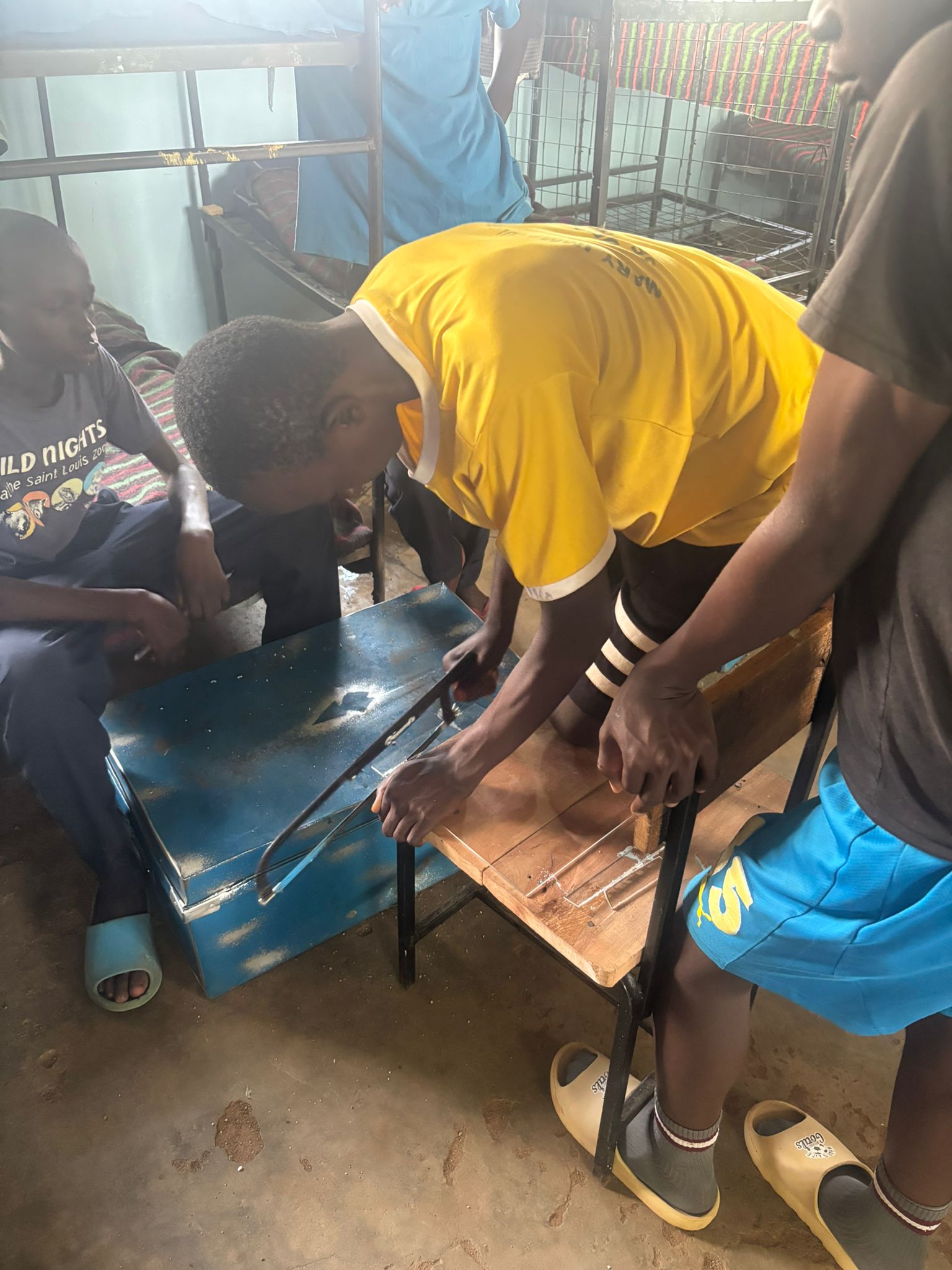 The finishing of the boys’ dormitory windows required lots of team work and skill. Latches on the windows meant that the pre-cut Perspex had to be re-cut again with a hacksaw. The boys were an amazing team to pull this together under the guidance of Mr Naftan.