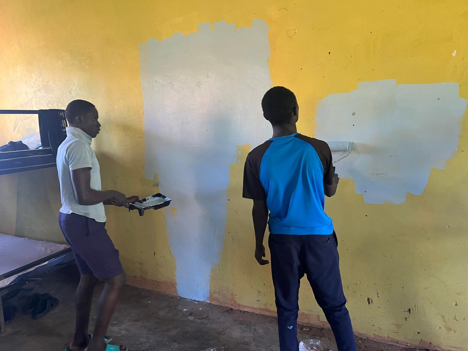 Coombe Pafford’s staff and students along with Imprezza’s students start work decorating the boys dorm and replacing broken windows